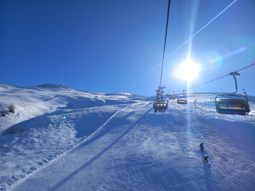 Panují dobré lyžařské podmínky a modrá obloha se sluníčkem. Všechny sjezdovky jsou upravené a otevřené. Přepravní zařízení jezdí denně od 9 do 16.30 h.
