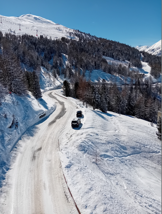 V oblasti Livigna sněžilo od pátku (23. 2.) do nedělního rána. I přes průběžnou úpravu mechanizací se řidiči neobešli bez zimních pneumatik a řetězů. Na vrcholech (Mottolino a Carosello) nyní máme do 100 cm, ve městě asi 10 cm sněhu. Teploty se přes den pohybují do 2 °C a v noci klesají až na -5 °C.