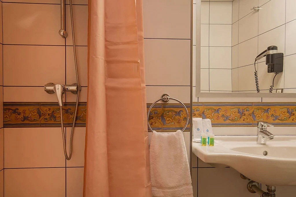 pokoj s 1 či 2 samostatnými lůžky či manželskou postelí a případně rozkládacím gaučem pro 1 osobu, sociální zařízení se sprchou či vanou
