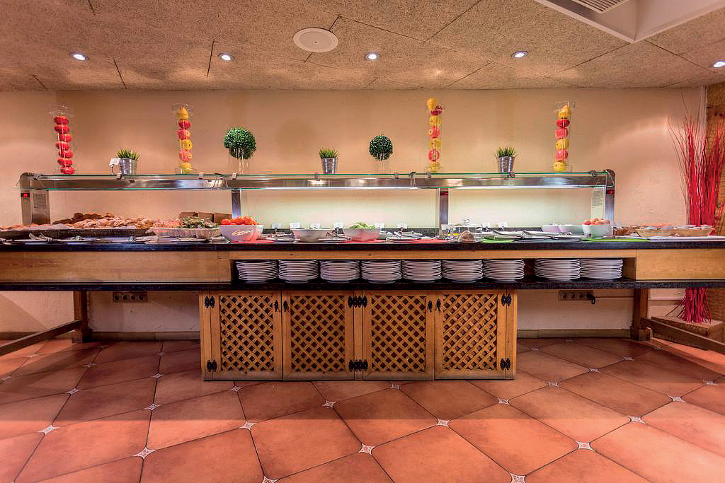 formou bufetu 2 až 3 studených předkrmů, 2 teplých předkrmů, 3 až 4 hlavních jídel s přílohou, salátů a dezertů, nápoje za poplatek