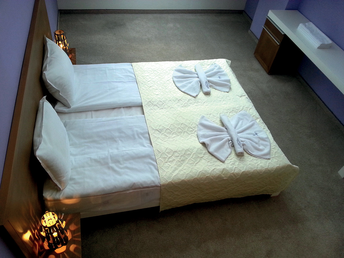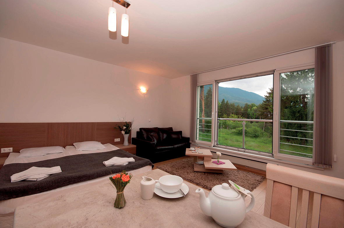 TV sat., telefon, fén, wi-fi připojení k internetu, nápojová lednička, rychlovarná konvice, župany do wellness; kuchyňské vybavení* (na vyžádání)