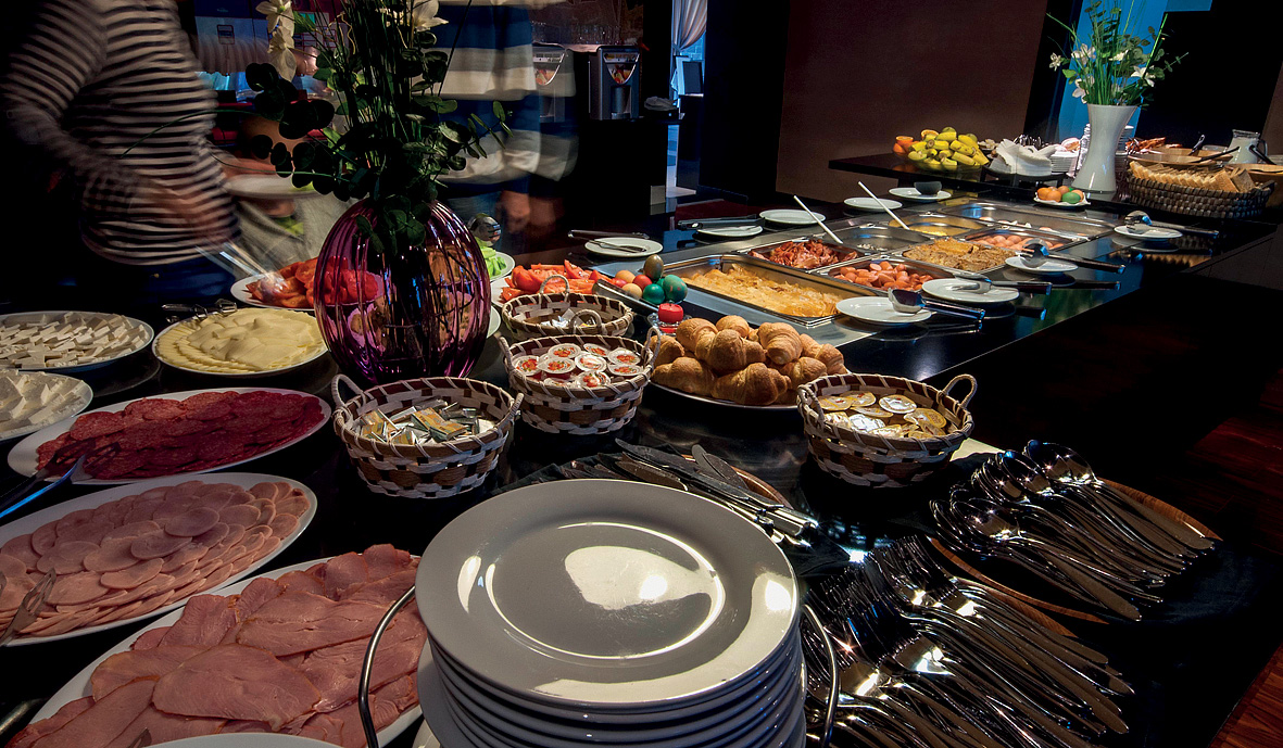 formou bufetu s výběrem předkrmů, hlavních jídel, příloh, salátů a desertů, nápoje za poplatek