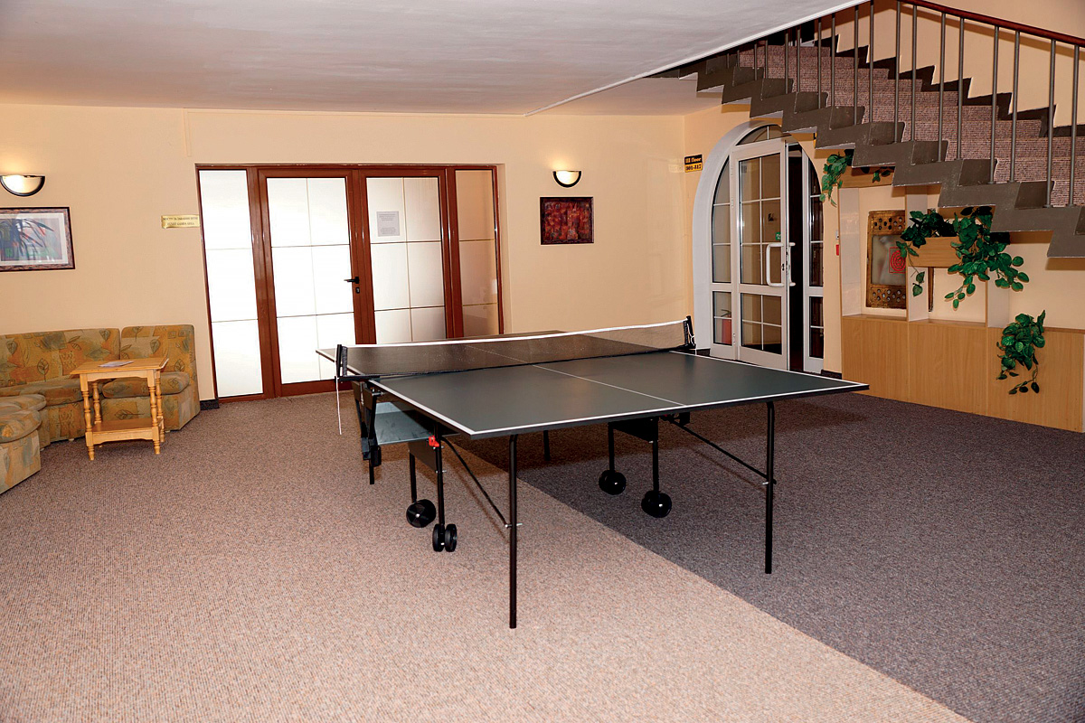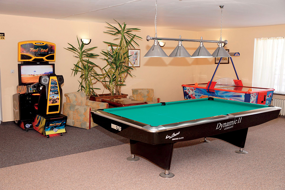 finská sauna, biliár*, stolní tenis*, vzdušný hokej*