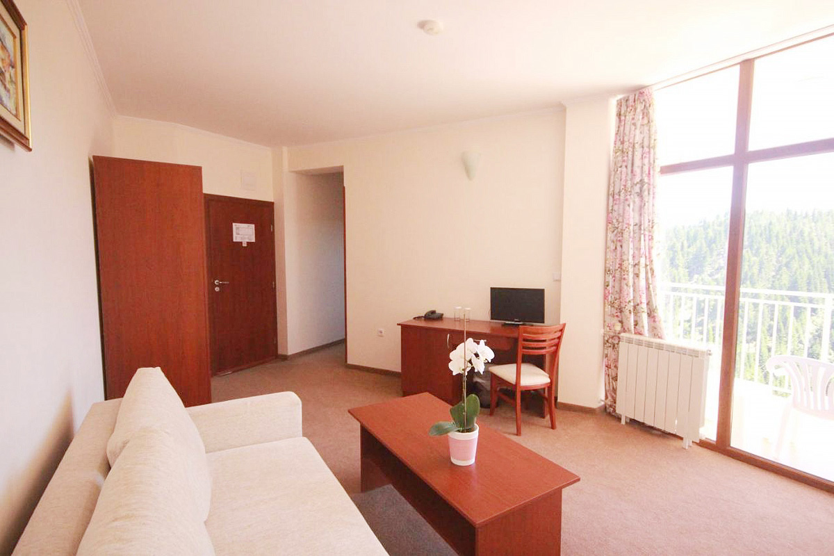 ložnice s manželskou postelí, obývací pokoj s rozkládacím gaučem pro 2 děti do nedovršených 12 let či 1 dospělou osobu, sociální zařízení s vanou, balkon