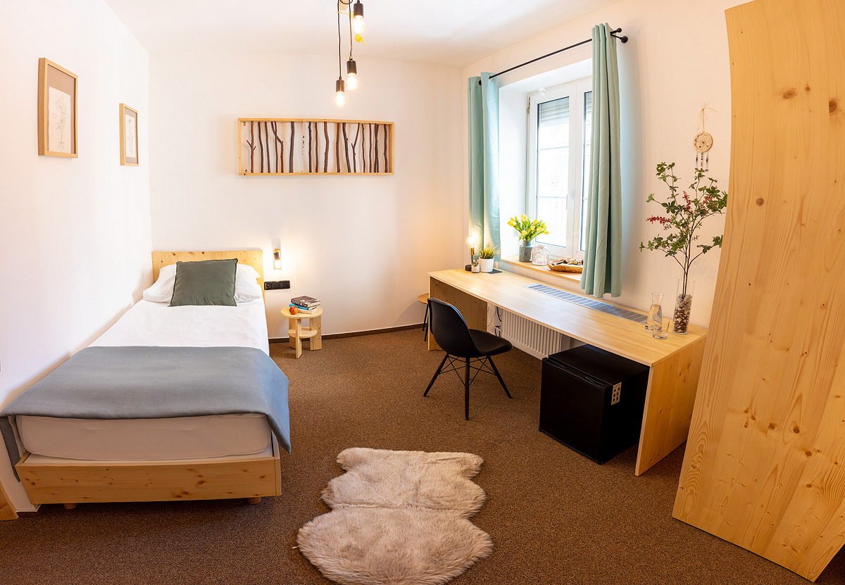 Standard 1/2 - pokoj se samostatným lůžkem s možností 1 přistýlky, sociální zařízení