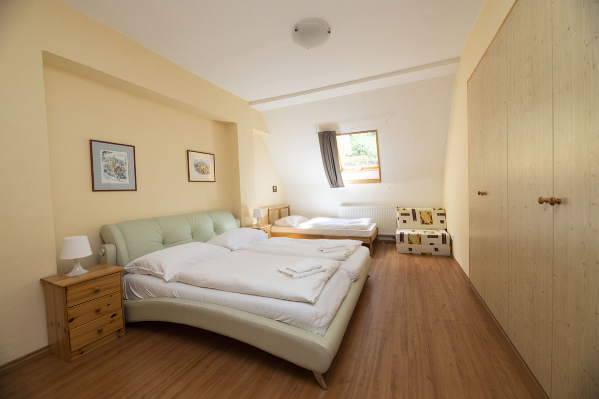 15 m² - pokoj s manželskou postelí či 2 samostatnými lůžky, sociální zařízení se sprchou