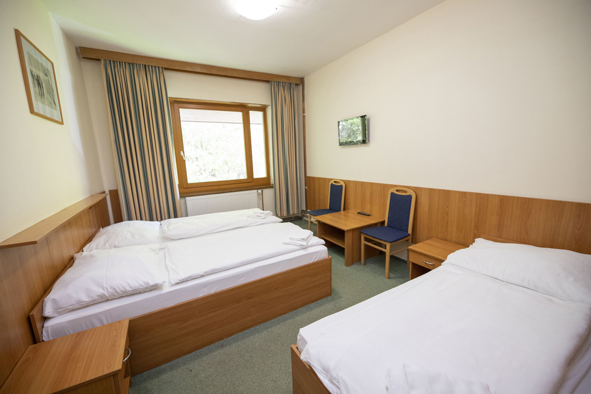 15 m² - pokoj s manželskou postelí či 2 samostatnými lůžky, obsazený 1 osobou, sociální zařízení se sprchou