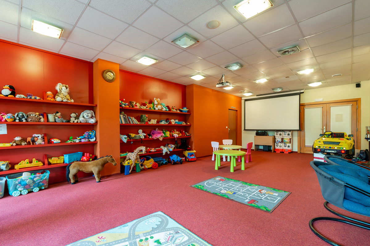 recepce / lobby s knihovnou, restaurace, jídelna, bar, společenská místnost, kongresový sál* až pro 70 osob s projekční technikou, seminární místnost*, sluneční terasa s posezením, dětská herna, dětské hriště s trampolínou, místnost s herními automaty a air hockey, wi-fi připojení k internetu ve většině společných prostor, úschovna lyží, místnost pro úschovu zavazadel, výtah (neobsluhuje všechny patra), vyhrazené parkoviště *