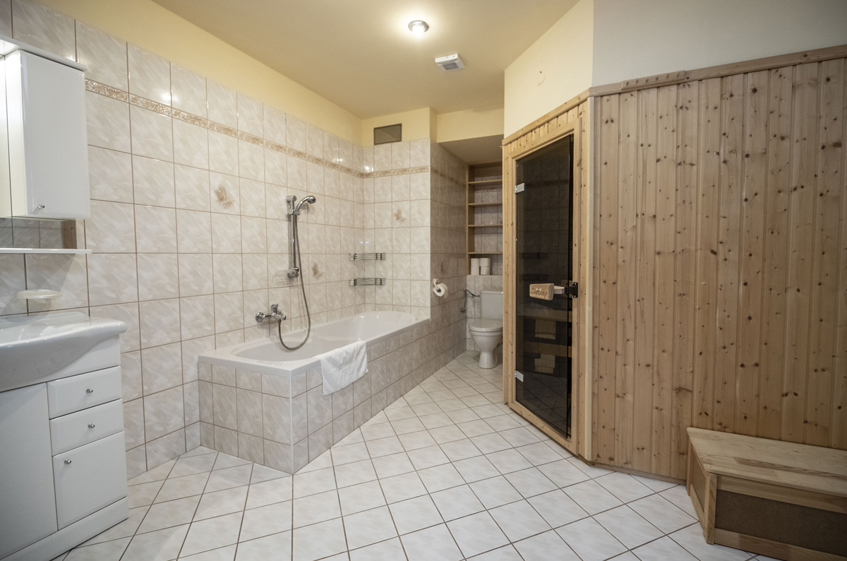 finská sauna*, infrakabina*, relaxační koutek* s lehátky, masáže*, biliár*, stolní tenis, vířivá vana*