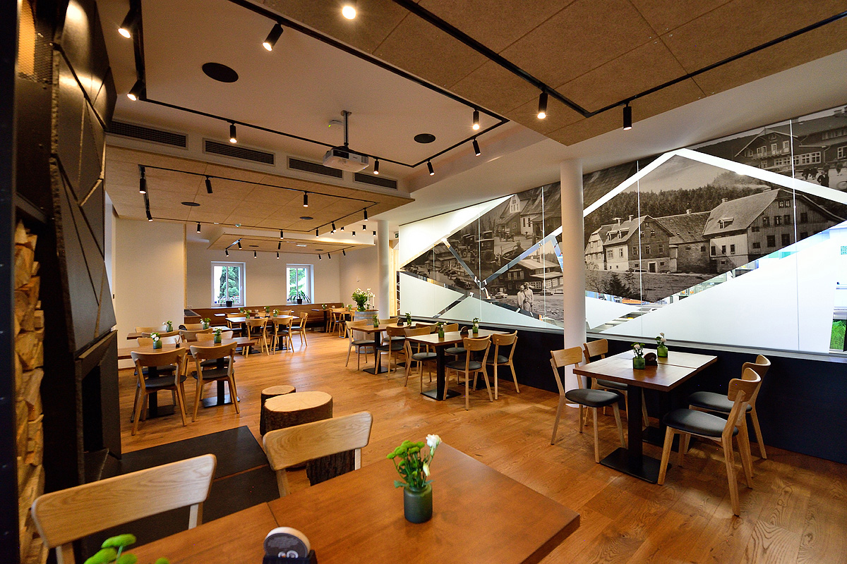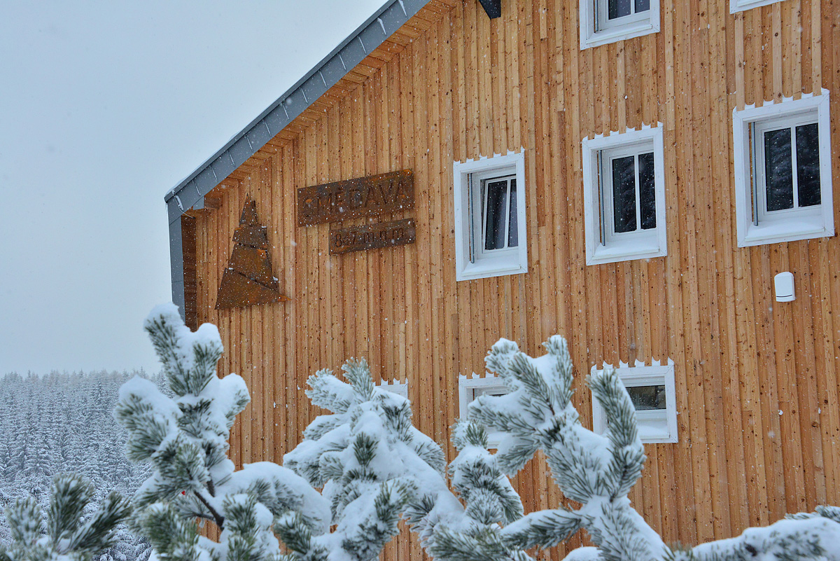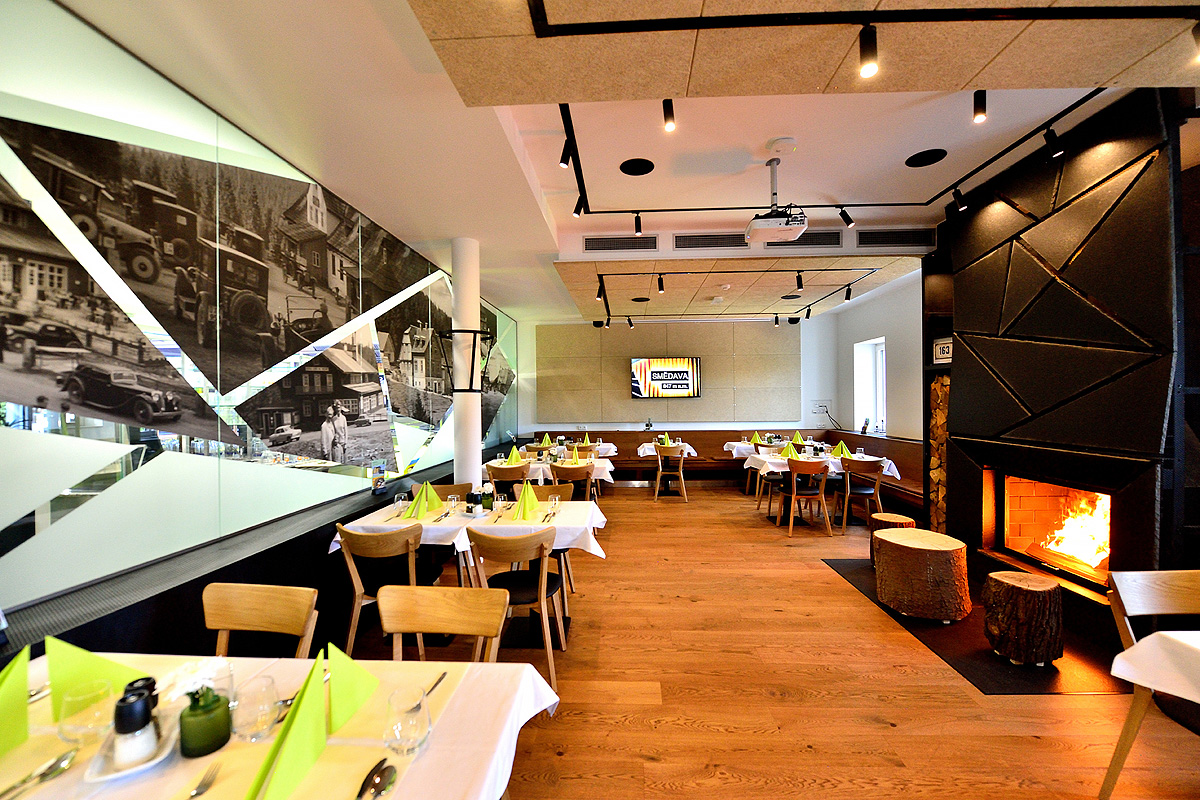 recepce, restaurace, terasa, wi-fi připojení k internetu, úschovna lyží, místnost pro úschovu zavazadel, vyhrazené parkoviště, nabíjecí stanice pro elektromobily*