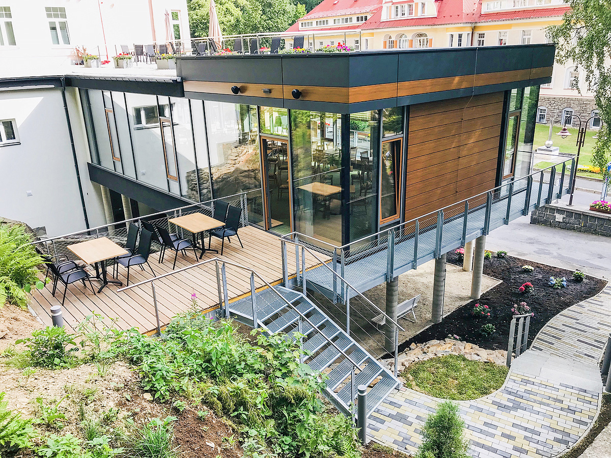 denní recepce 7 - 19 hodin, 19 - 21 hodin recepce LC Agricola (50 m od hotelu), 21 - 7 hodin recepce v hotelu Radium Palace (200 m od hotelu), restaurace, kavárna (v LC Agricola), wi-fi připojení k internetu, místnost pro úschovu lyží i kol, výtah, parkování na nedalekém parkovišti* (200 m), kadeřnictví*