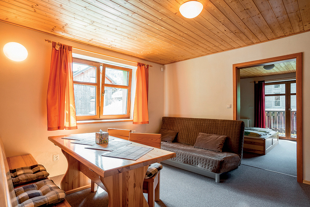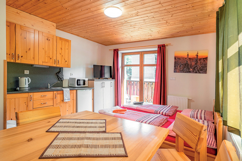 apartmány s jedinečnou polohou pouze přes silnici od skiareálu Kouty