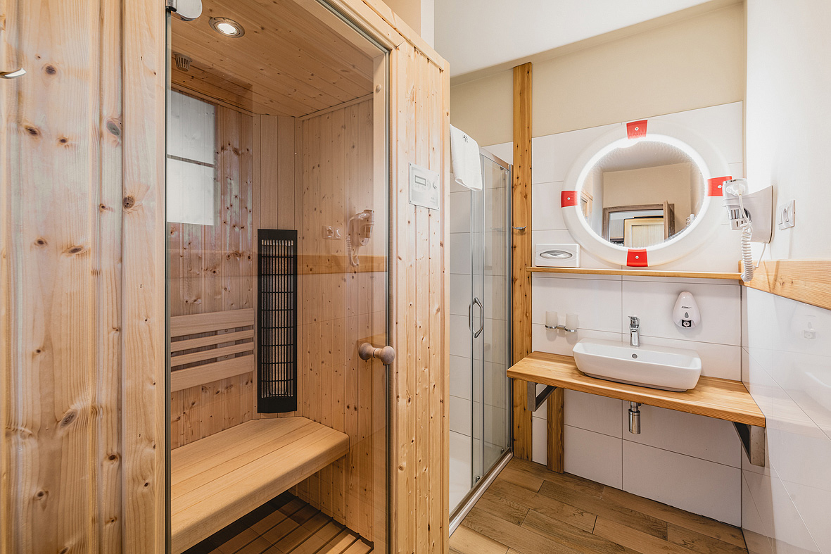18 m² - pokoj s manželskou postelí či 2 samostatnými lůžky a případně rozkládacím gaučem pro 1 osobu, sociální zařízení zpravidla se sprchou, některé pokoje s balkonem*