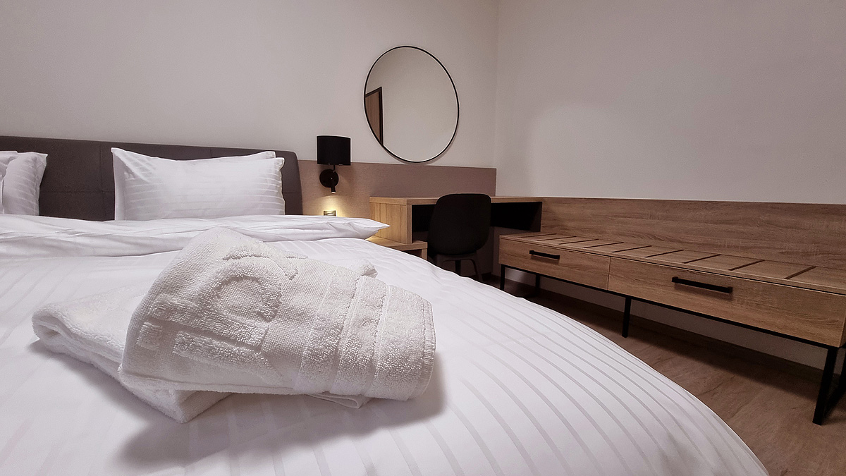 21 m² - pokoj s manželskou postelí či 2 oddělitelnými lůžky, sociální zařízení, balkon