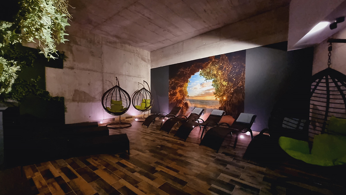 bazén se slanou vodou 10,5 x 5 m* (v provozu od 1.6. - 30.9.), venkovní vířivka* (v provozu jaro - podzim), saunový svět* (2x saunová kabinka, 1x infrasauna, odpočinková místnost se solnou stěnou a infralehátky, masáže*, metaná*, lední kluziště*, minigolf*
