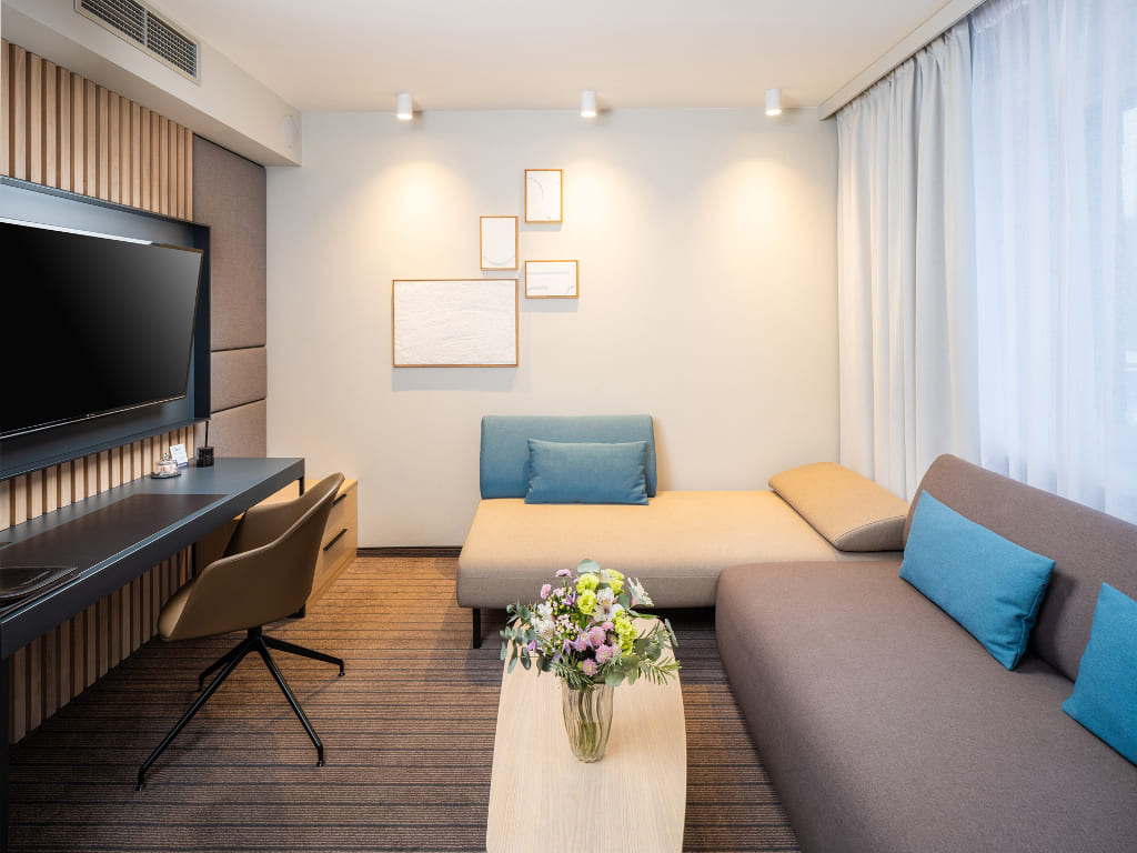 TV sat., wi-fi připojení, minibar, spa taška (župan, přezůvky, osuška), fén, telefon, klimatizace (pokoj Standard Plus), trezor, čajový set (pokoj Standard view)