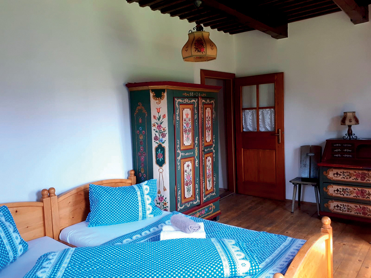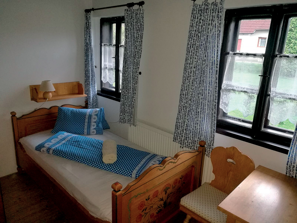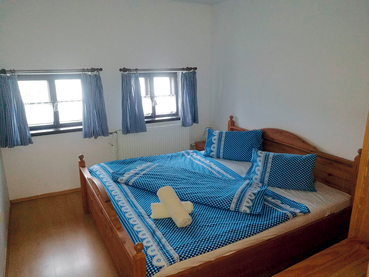 1 ložnice s manželskou postelí, 1 ložnice se 3 samostatnými lůžky, sociální zařízení