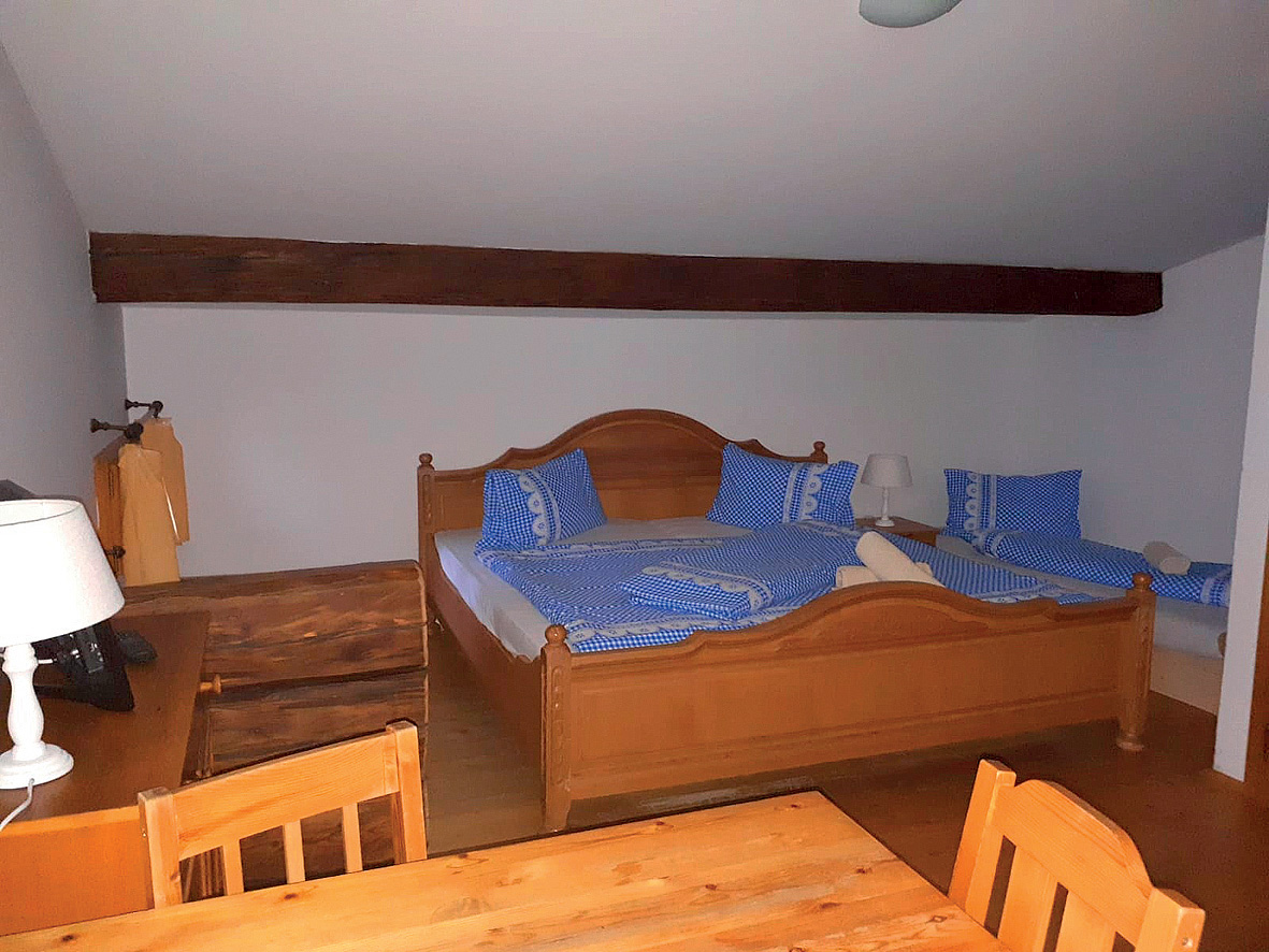 rodinný podkrovní pokoj se 6 samostatnými lůžky (některé lze dát k sobě), sociální zařízení