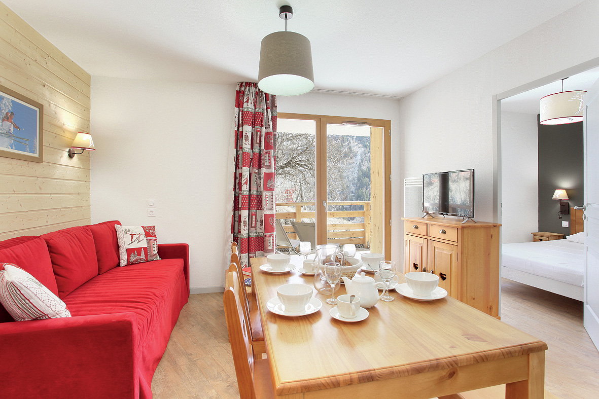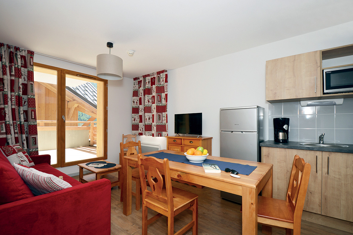 37 m² - 1 ložnice s manželskou postelí a rozkládacím lůžkem pro 1 osobu, obývací pokoj s kuchyňským koutem a rozkládacím gaučem pro 2 osoby (možno i typ "šuplík"), sociální zařízení se sprchou či vanou, balkon či terasa
