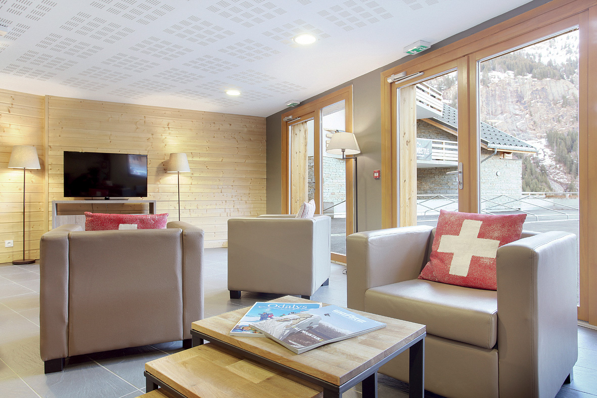 recepce / lobby s TV, úschovna lyží, výtah, garážová stání (1 místo / apartmán zdarma, další za poplatek), pračka*