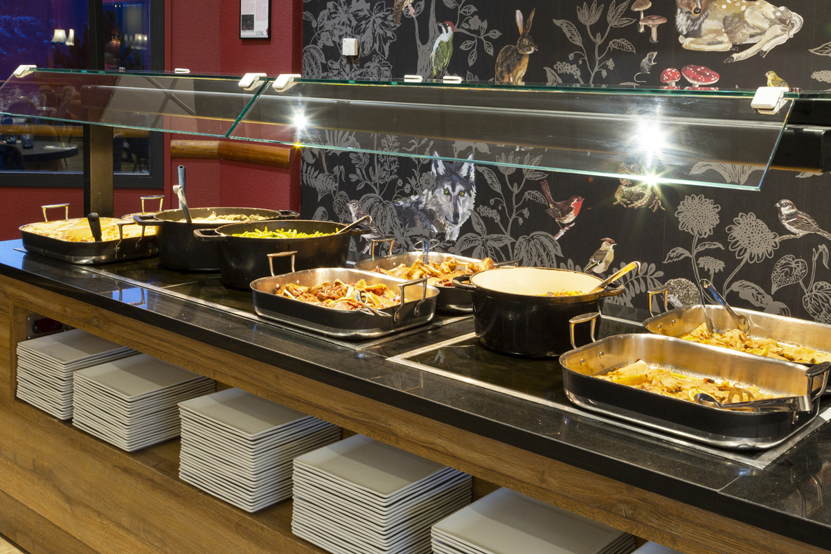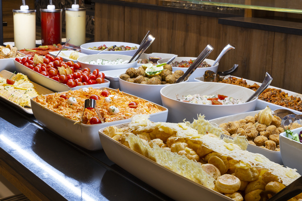 teplé předkrmy, hlavní jídla i dezerty formou bufetu