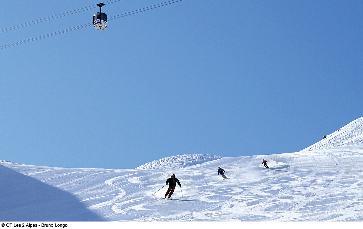 Les 2 Alpes je velké a vynikající moderní alpské „celoroční“ středisko rozkládající se 60 kilometrů východně od Grenoblu v masivu La Meije na úpatí největšího lyžařského ledovce v Evropě Mont de Lans. Nabízí až 170 dní dlouhou lyžařskou sezónu, a to bez započtení letního provozu na ledovci. Skiareál vznikl spojením oblastí Mont-de-Lans a Venosc a následným vybudováním nového střediska Les 2 Alpes o jedno „patro“ výše v nadmořské výšce 1.650 m, čímž umožňuje fascinující lyžování až do výšky 3.523 m n. m. Disponuje 225 kilometry pečlivě upravovaných sjezdových tratí všech stupňů obtížnosti s převahou sjezdovek nižší a střední náročnosti. V posledních letech zprovozněná modrá sjezdovka umožnila dojezd až do střediska i méně zdatným lyžařům. K pohodlí sjezdařů přispívá i každoroční renovace lanovek. Novinkou sezóny 2023/24 je nová kombinovaná lanovka Belle Etoile, tedy střídavě 10místné kabinky a 6sedačky. V letech 2024–2025 bude ve dvou etapách vystavěna vysokorychlostní a vysokokapacitní lanovka Jandri Express vedoucí ze střediska až na ledovec, výrazně se tím zrychlí přeprava a zmizí fronty.