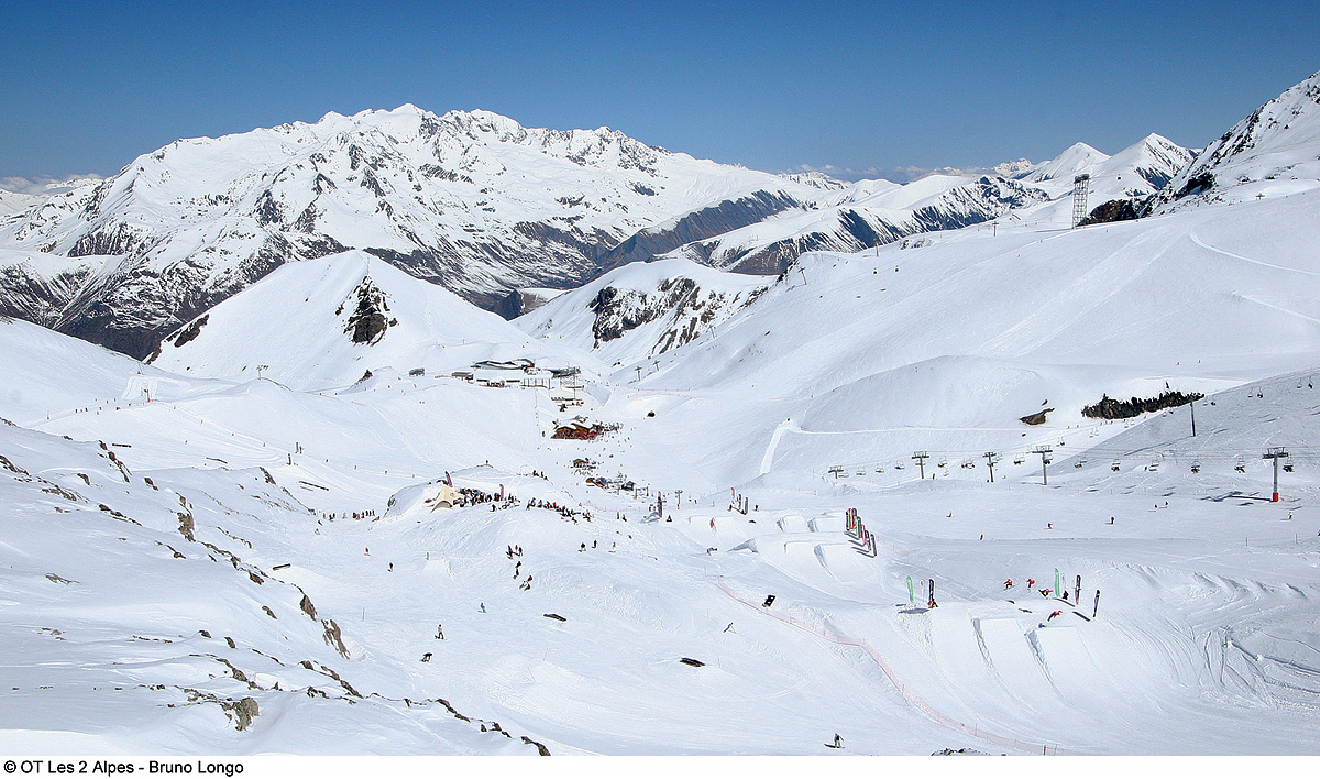 Úctyhodné převýšení přes 2.000 metrů a značná členitost činí z Les 2 Alpes skutečnou Mekku freeriderů. Na freestylisty zde pak čeká jeden z nejlepších snowparků ve francouzských Alpách vybudovaný v sektoru La Toura (2.600 m n. m.), létě pak stejně dokonalý snowpark přemístěný na ledovec do výšky 3.200 metrů. Pověst střediska jako kolébky moderních sportů potvrzuje i fakt, že se v Les 2 Alpes konají Světové poháry ve snowboardcrossu a skicrossu.