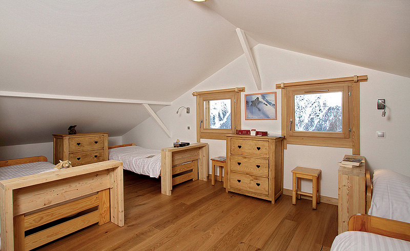 220 m² - 1. podlaží chaletu: 3 ložnice s manželskou postelí, 1 ložnice se 2 palandami, 2x sociální zařízení (vstup z jedné z ložnic s manželskou postelí a z ložnice se 2 palandami); 2. podlaží chaletu: 1 ložnice s manželskou postelí, obývací pokoj s krbem a kuchyňským koutem, sociální zařízení (1x WC navíc), 2x balkon; 3. podlaží chaletu: 1 ložnice se 2 samostatnými lůžky, 1 ložnice se 4 samostatnými lůžky, sociální zařízení (vstup z ložnice se 2 samostatnými lůžky)