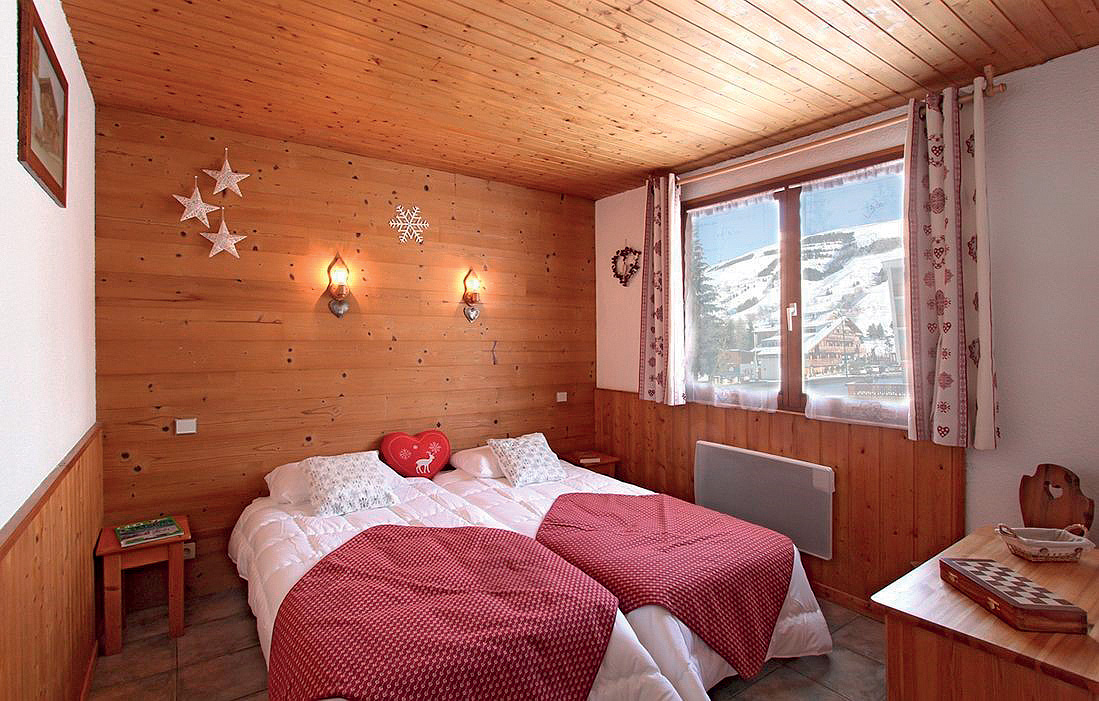 200 m² - 1. podlaží chaletu: 2 ložnice se 2 samostatnými lůžky, obývací pokoj s kuchyňským koutem, 2x sociální zařízení, terasa; 2. podlaží chaletu: 3 ložnice se 2 samostatnými lůžky, 3x sociální zařízení, balkon; 3. podlaží chaletu: 3 ložnice (1x s manželskou postelí, 1x se samostatnými lůžky, 1x s palandou), 3x sociální zařízení, balkon