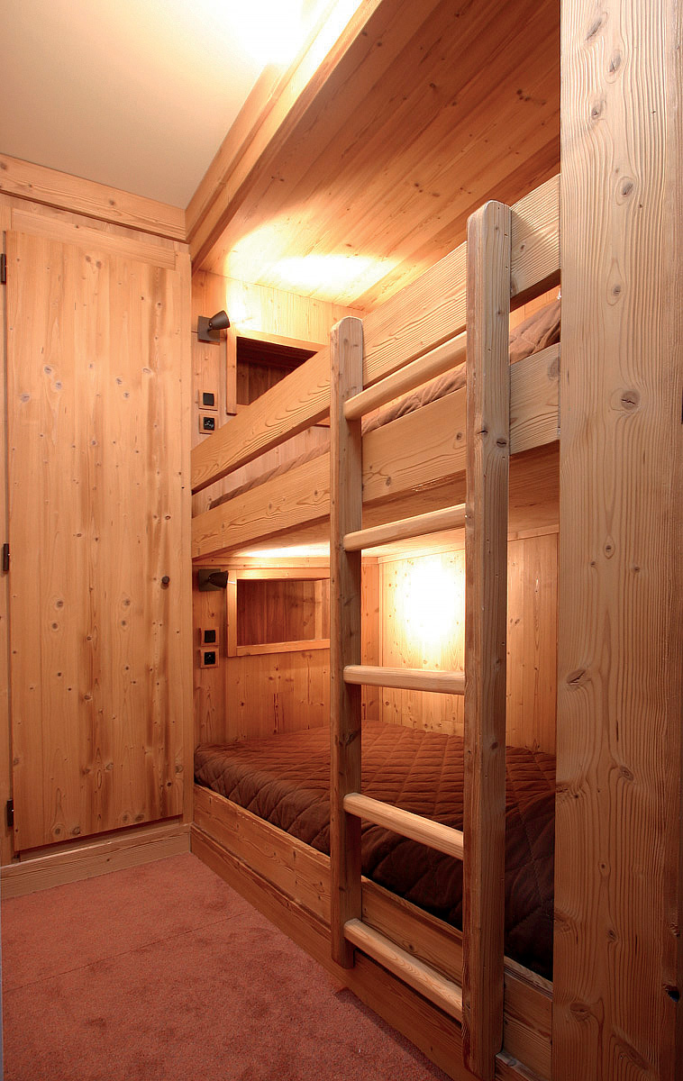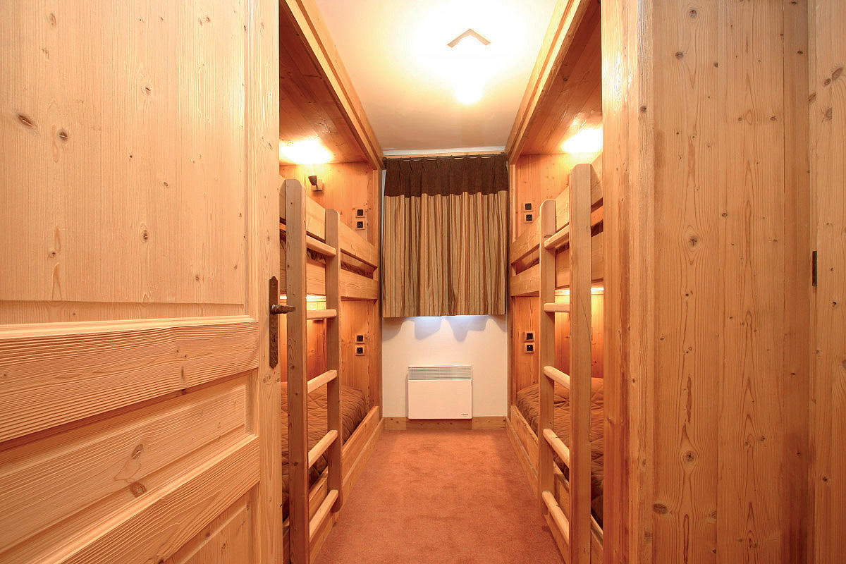 115 m² - 2 ložnice s manželskou postelí, 2 ložnice se 2 samostatnými lůžky, ne zcela uzavřená kabina s palandou, obývací pokoj s kuchyňským koutem, 2x sociální zařízení se sprchou či vanou, zpravidla balkon či terasa