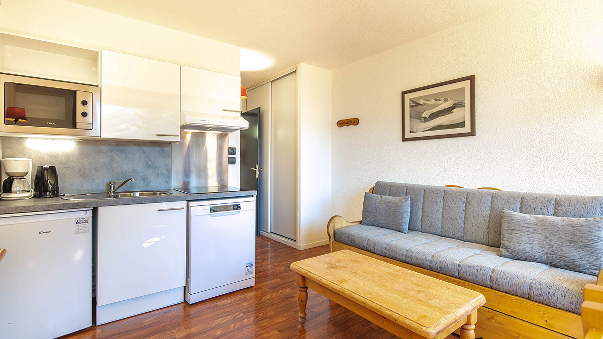 20 m² - obývací pokoj s kuchyňským koutem a rozkládacím gaučem typu "šuplík" pro 2 osoby, sociální zařízení se sprchou či vanou, z 50 % balkon či terasa