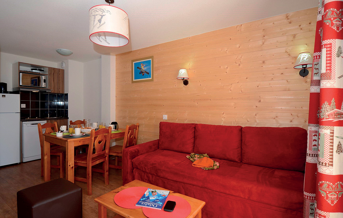 bilo 4 - 33 m² - 1 ložnice s manželskou postelí či 2 samostatnými lůžky, obývací pokoj s kuchyňským koutem a rozkládacím gaučem typu "šuplík" pro 2 osoby, sociální zařízení se sprchou či vanou