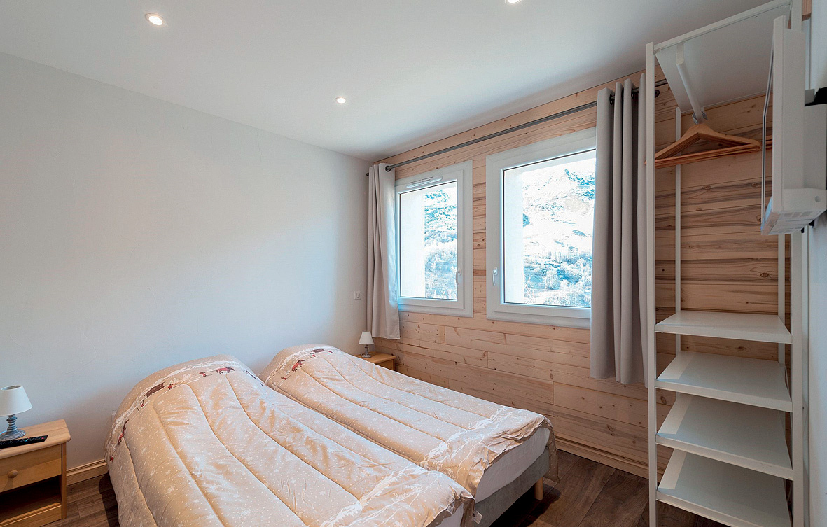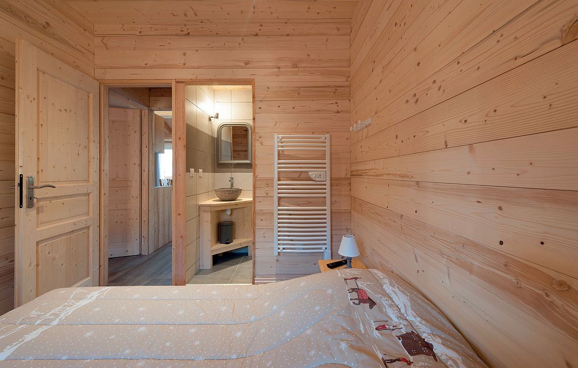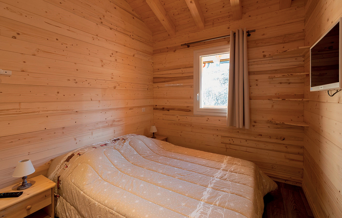 110 m² - 1. podlaží chaletu: 1 ložnice s manželskou postelí, 1 ložnice se 2 samostatnými lůžky, obývací pokoj s kuchyňským koutem, sociální zařízení, terasa; 2. podlaží chaletu: 1 ložnice s manželskou postelí, 1 ložnice se 2 samostatnými lůžky, 2x sociální zařízení (1x bez WC)