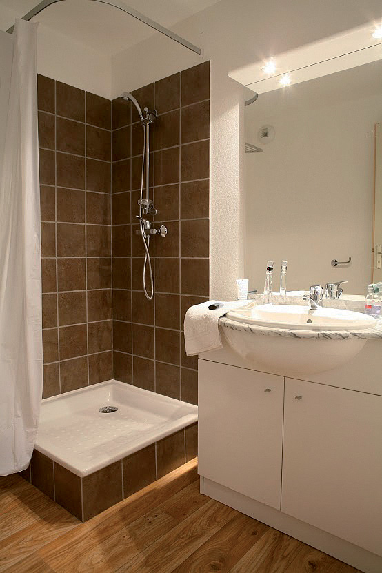34 m² - 1 ložnice s manželskou postelí či 2 samostatnými lůžky, obývací pokoj s kuchyňským koutem a rozkládacím gaučem pro 2 osoby (možno i typ "šuplík") či 2 samostatnými lůžky, kabina či vstupní místnost s palandou, sociální zařízení se sprchou či vanou, balkon či terasa; některé apartmány jsou dvoupodlažní