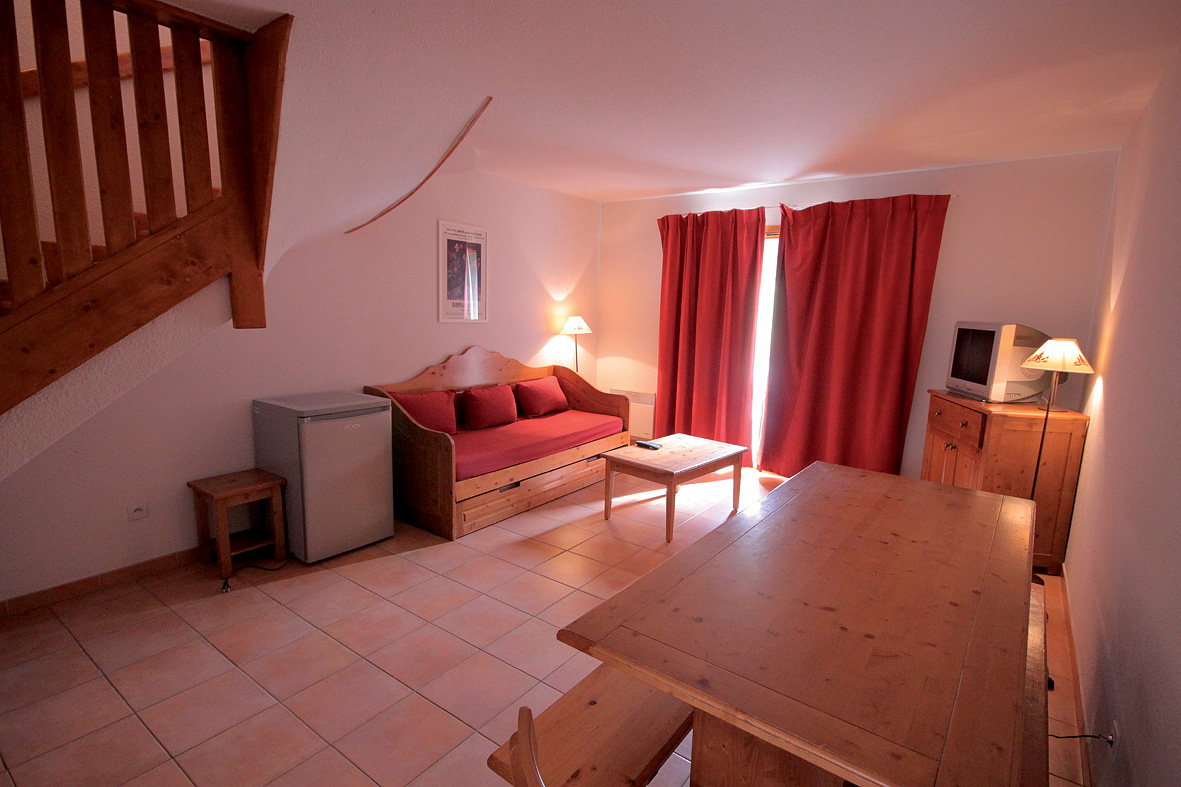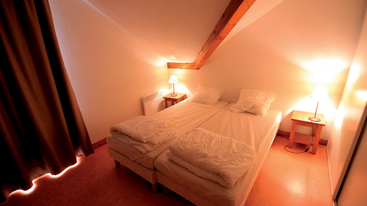chalet triplex 10 - 72 m² - přízemí: obývací pokoj s kuchyňským koutem a rozkládacím gaučem pro 2 osoby (možno i "šuplíkový" typ) nebo 2 rozkládacími gauči pro 1 osobu, koupelna (pouze WC), balkon nebo terasa; 2. patro : 2 ložnice + koupelna nebo sprchový kout s WC. 3. patro chaty: 1 ložnice se 2 nebo 3 samostatnými lůžky, 1 ne zcela uzavřená kabina s 1 nebo 2 samostatnými lůžky, koupelna nebo sprchový kout s WC