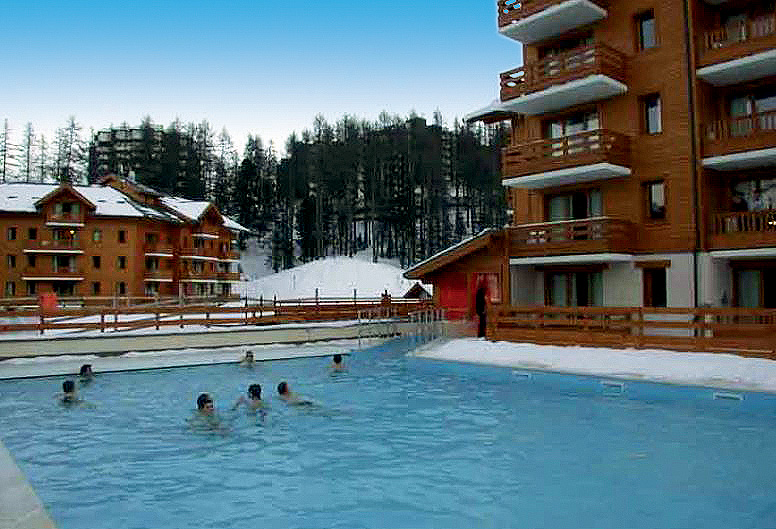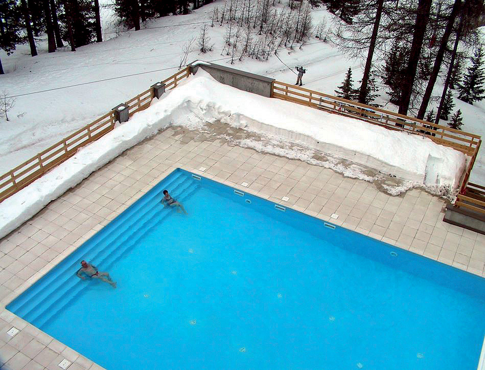velký venkovní vyhřívaný bazén jako relaxace po lyžování