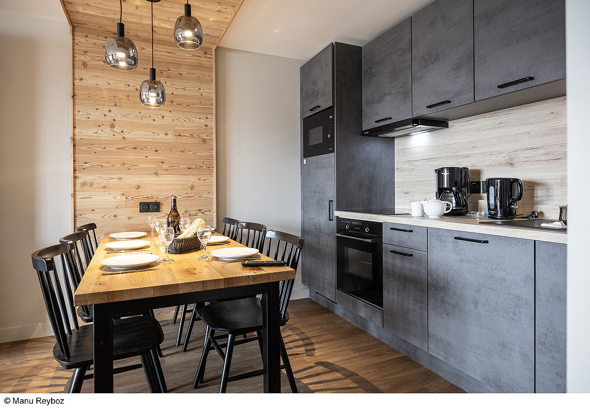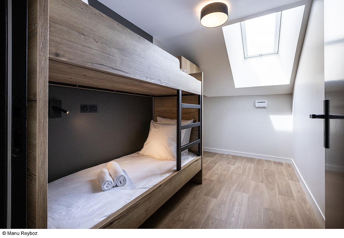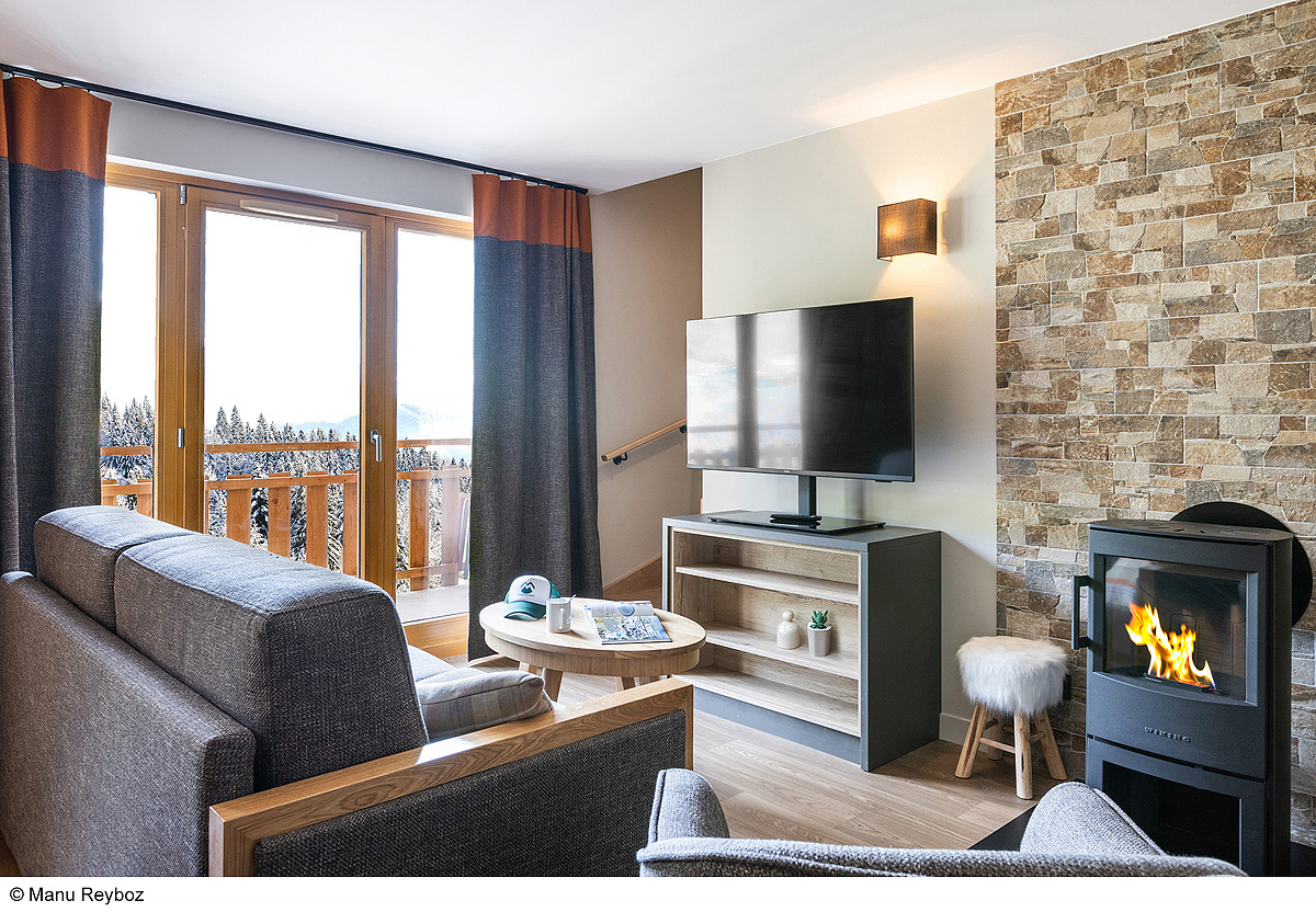 49 - 52 m² - 2 ložnice se 2 samostatnými lůžky (možno spojit na dvoulůžko), obývací pokoj s kuchyňským koutem a rozkládacím gaučem pro 2 osoby (možno i typ "šuplík), 2-3x sociální zařízení, balkon s výhledem na hory