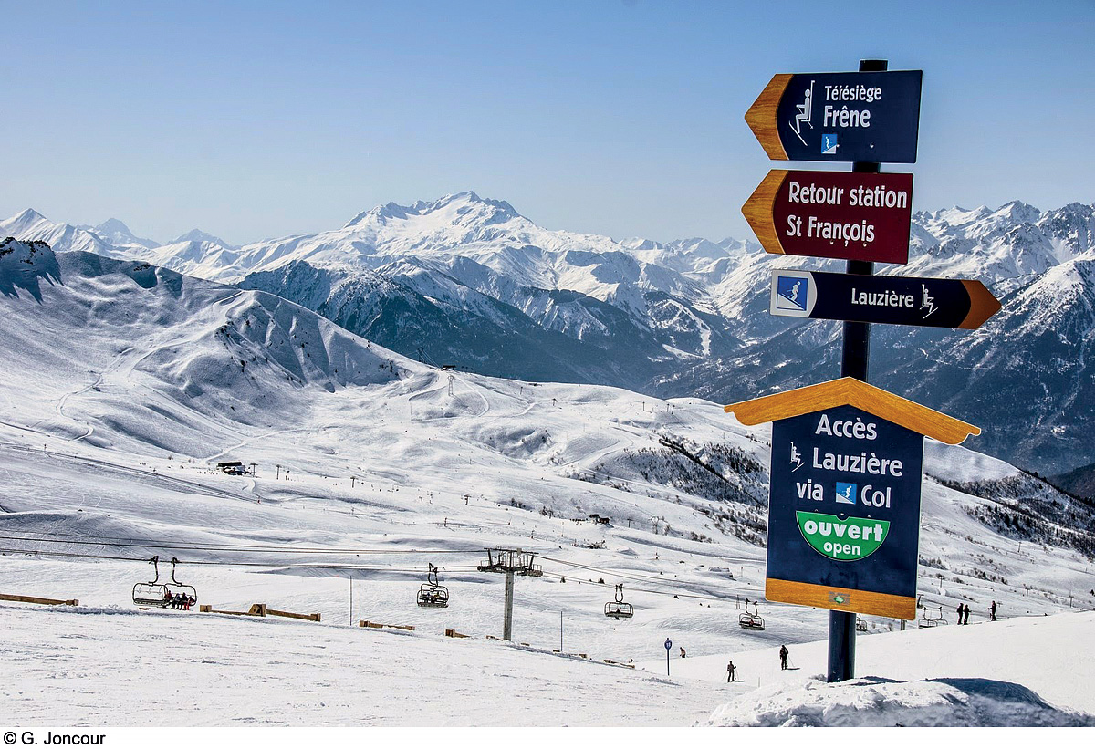 • lyžařská oblast nabízející jak jednodušší zelené a modré sjezdovky pro méně zkušené lyžaře v nižších partiích Saint François Lonchamp, tak i obtížnější sjezdy třeba ze sedel Gollet a Mottet nad střediskem Valmorel odkud se nabízí úžasné výhledy na masiv Mont Blancu