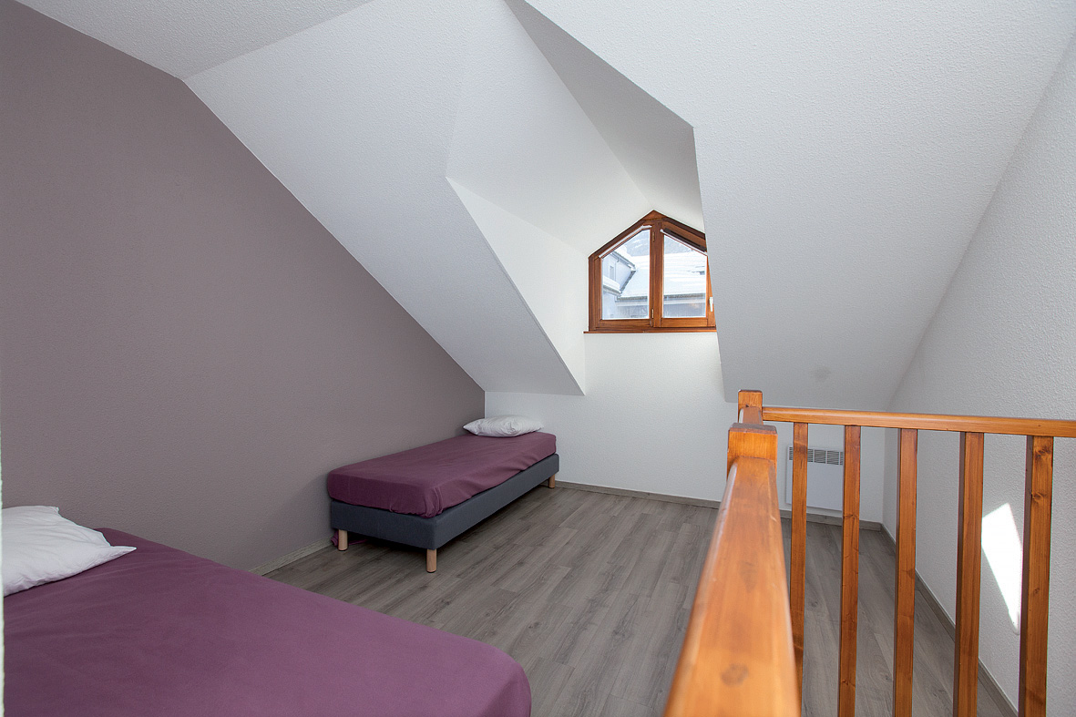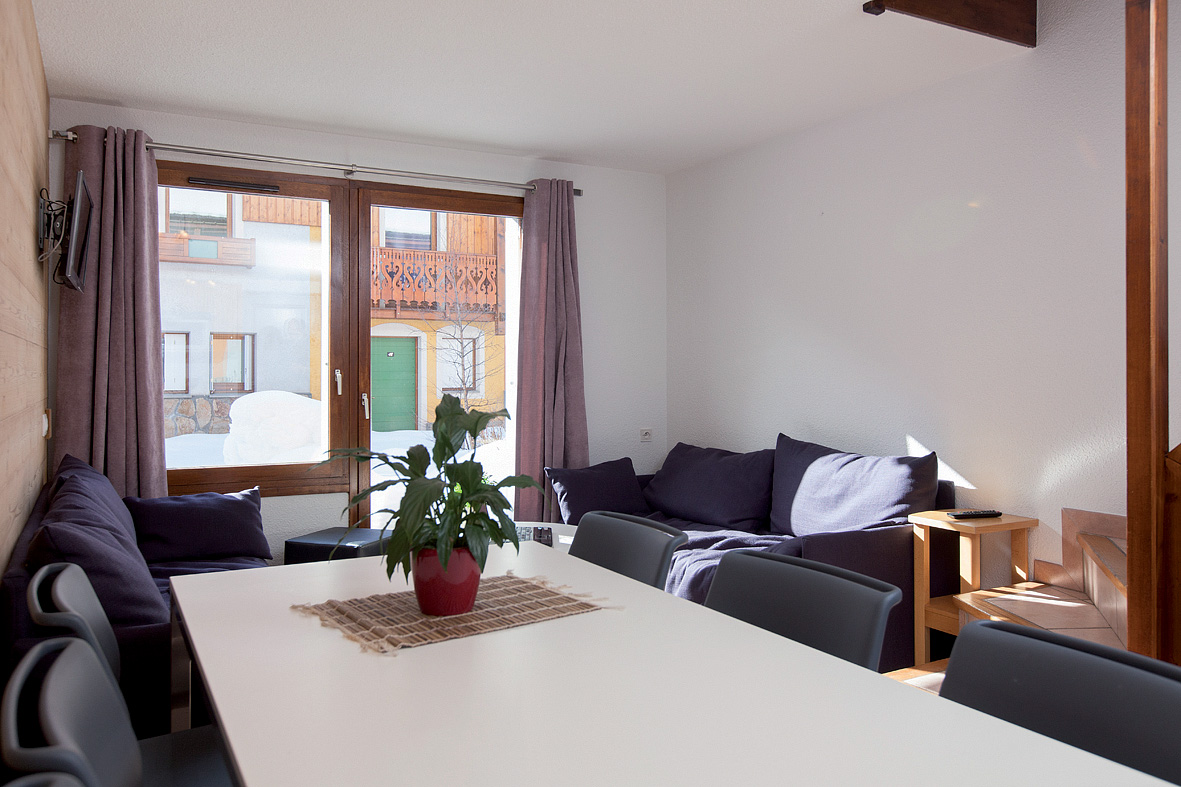 45 m² - 1 ložnice s manželskou postelí, 1 ložnice či kabina se 2 samostatnými lůžky, obývací pokoj s kuchyňským koutem a rozkládacím gaučem pro 2 osoby (možno i typ "šuplík"), sociální zařízení se sprchou či vanou, balkon či terasa; apartmány jsou zpravidla dvoupodlažní; výhled na hory