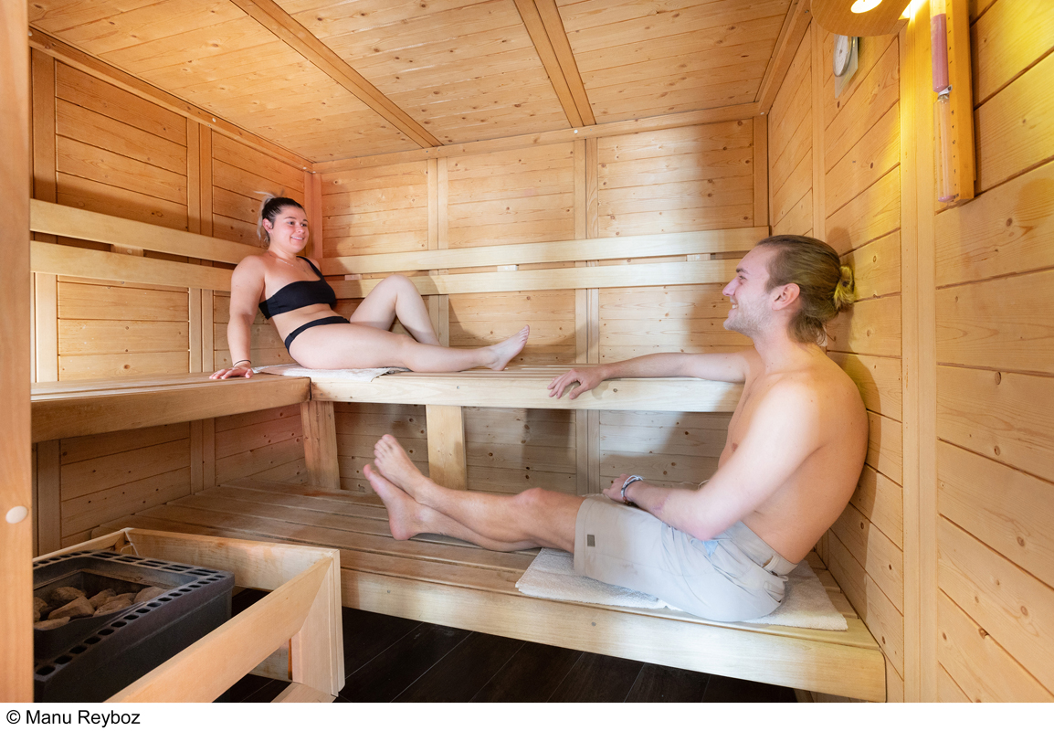 venkovní vyhřívaný bazén, sauna, pára, masáže* a kosmetické služby*, relaxační zóna, animační programy (aqua relax, jóga)
