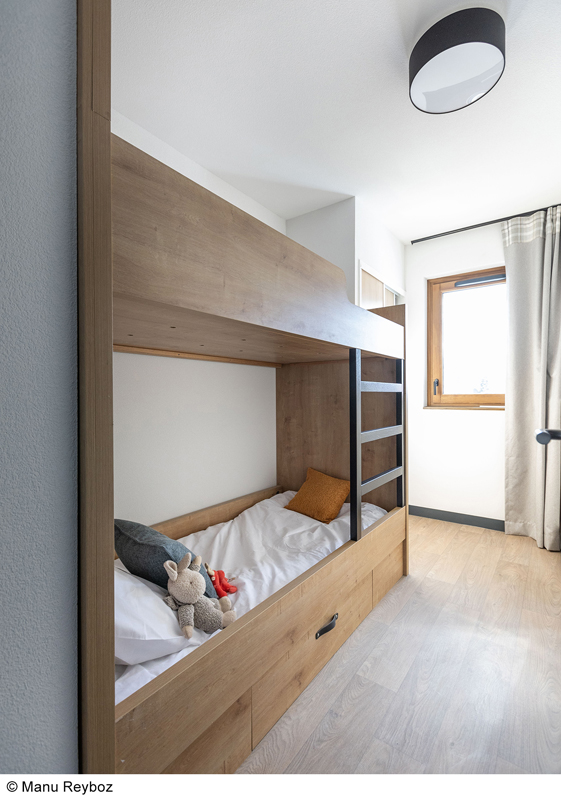 bilo 4 - 35m² - 1 ložnice se 2 samostatnými lůžky (možno spojit ve dvoulůžko), obývací pokoj s kuchyňským koutem a rozkládacím gaučem pro 2 osoby (možno i typ "šuplík"), sociální zařízení se sprchou či vanou, balkon