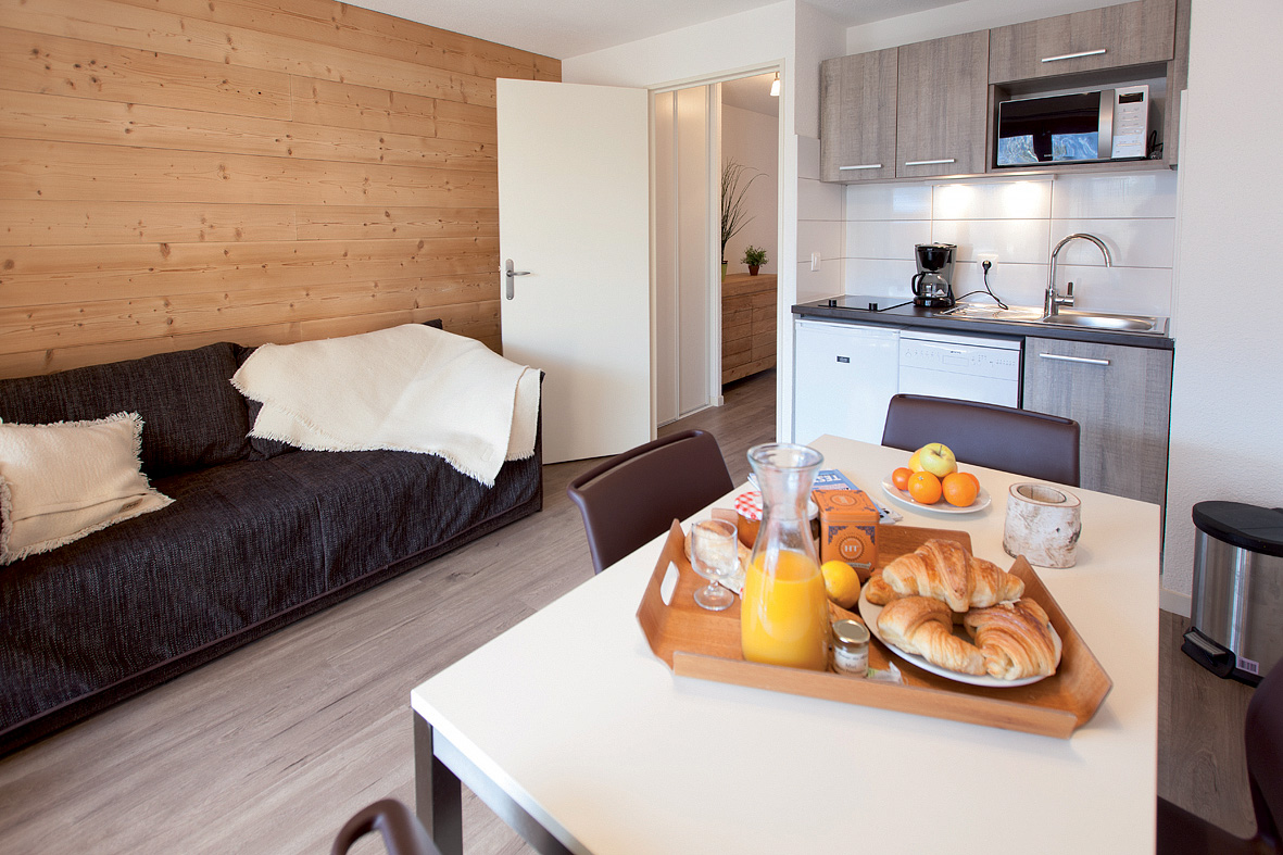 18 m² - obývací pokoj s kuchyňským koutem a rozkládacím gaučem pro 2 osoby (možno i typ "šuplík"), sociální zařízení, balkon