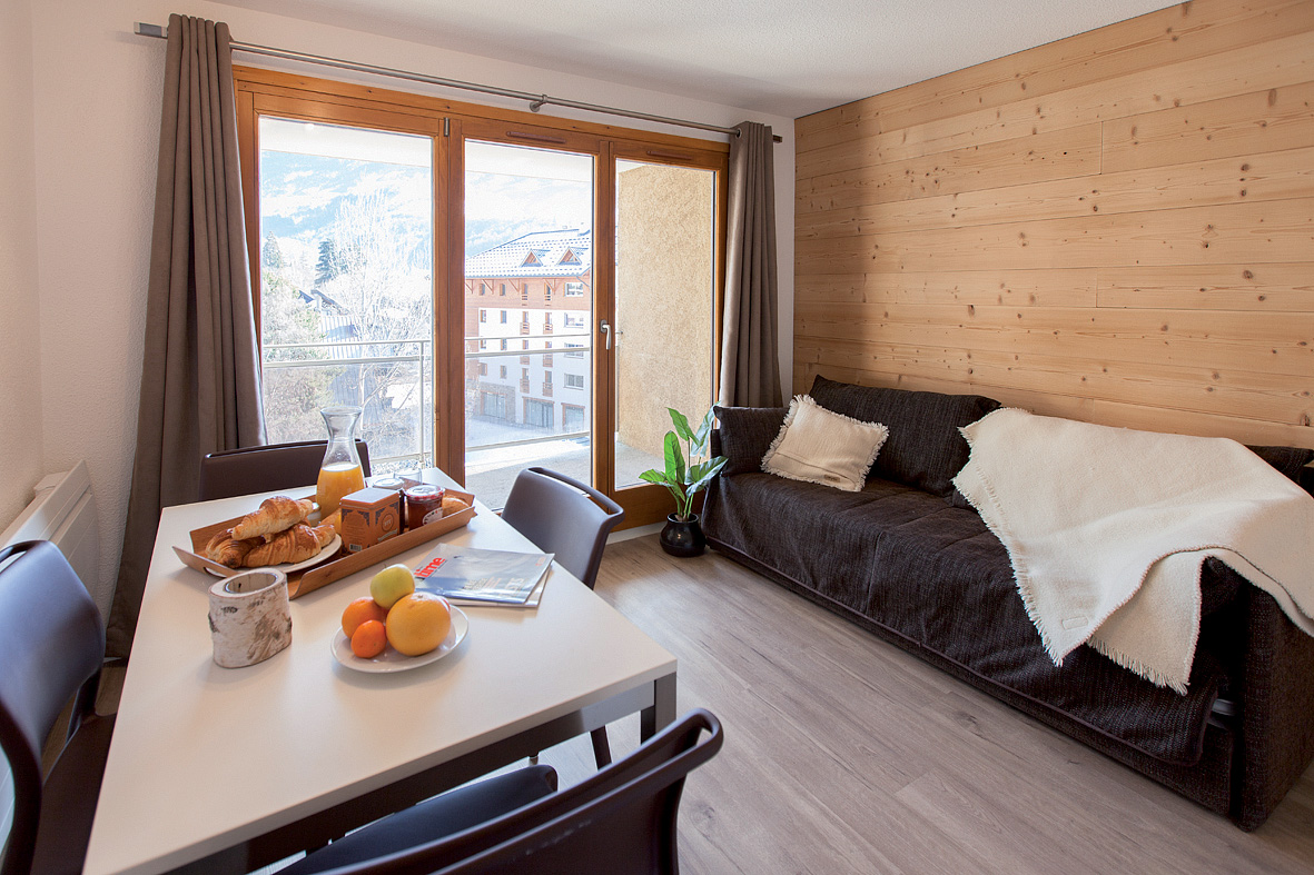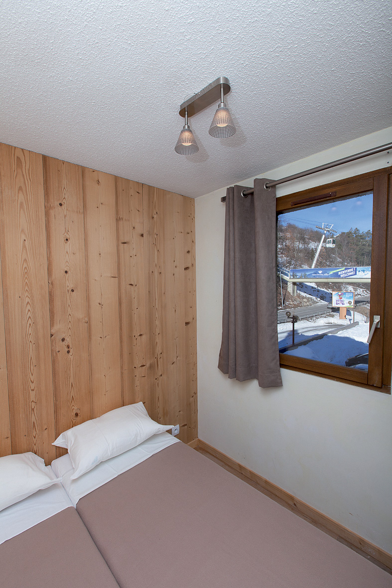 38 m² - 1 ložnice s manželskou postelí s oddělitelnými lůžky či rozkládacím gaučem pro 2 osoby (možno i typ "šuplík") či palandou, obývací pokoj s kuchyňským koutem a rozkládacím gaučem pro 2 osoby (možno i typ "šuplík"), kabina či vstupní místnost s palandou, sociální zařízení, balkon
