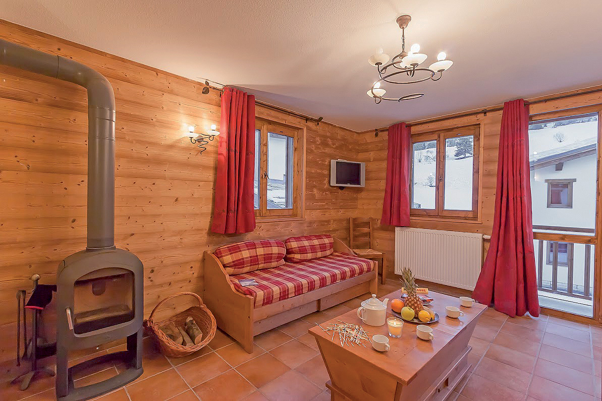80 m² - 3 ložnice se 2 samostatnými lůžky, 1 kabina se 2 samostatnými lůžky, obývací pokoj s krbovými kamny, kuchyňským koutem a rozkládacím gaučem pro 2 osoby (možno i typ "šuplík"), 3x sociální zařízení (1x se sprchou a WC, 2x s vířivou vanou), 2x oddělené WC, balkon