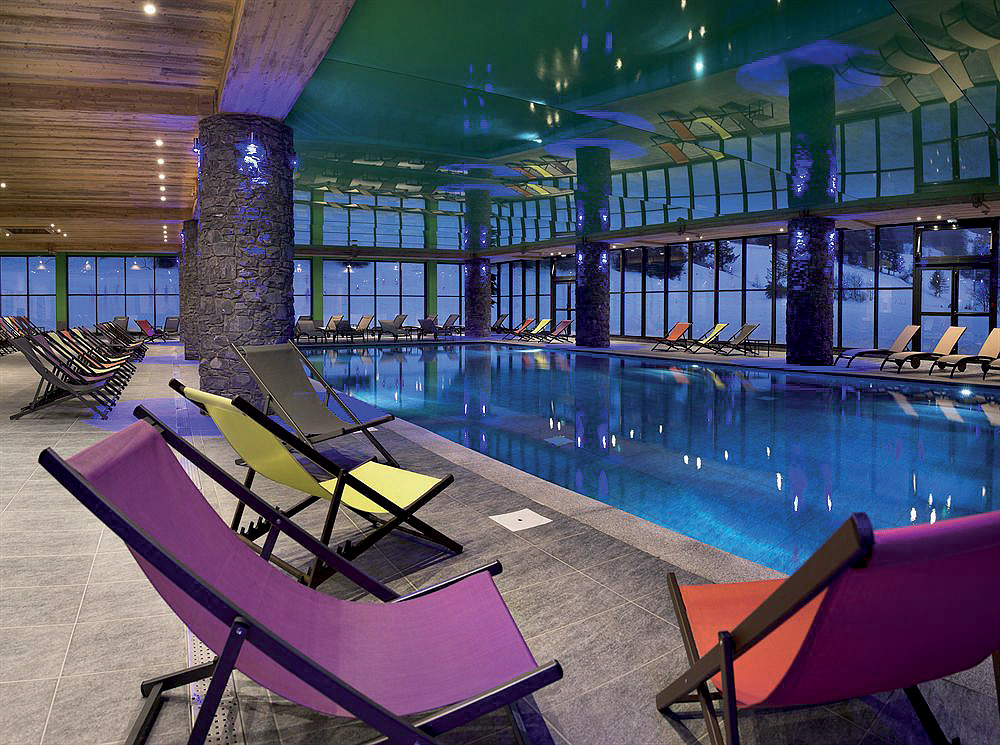 Centre O des Cimes - bazén# 16 x 6 m s lehátky, dětský bazének#, vířivka#, finská sauna#, pára#, masáže*, kosmetické služby*, posilovna#; služby označené # mohou využívat děti do 16 let jen v doprovodu dospělé osoby