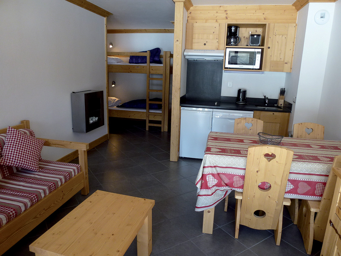 prostorné a velmi pěkně vybavené apartmány přímo u nástupu na lanovku a s dojezdem na lyžích až k residenci