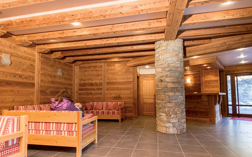 recepce / lobby s krbem / wi-fi připojení k internetu, úschovna lyží a lyžařských bot, výtah, veřejné parkoviště (ve vzdálenosti 50 m), garážová stání (1 auto / apartmán); v rámci Residence Critérium je i restaurace se sluneční terasou, minimarket a pekárna