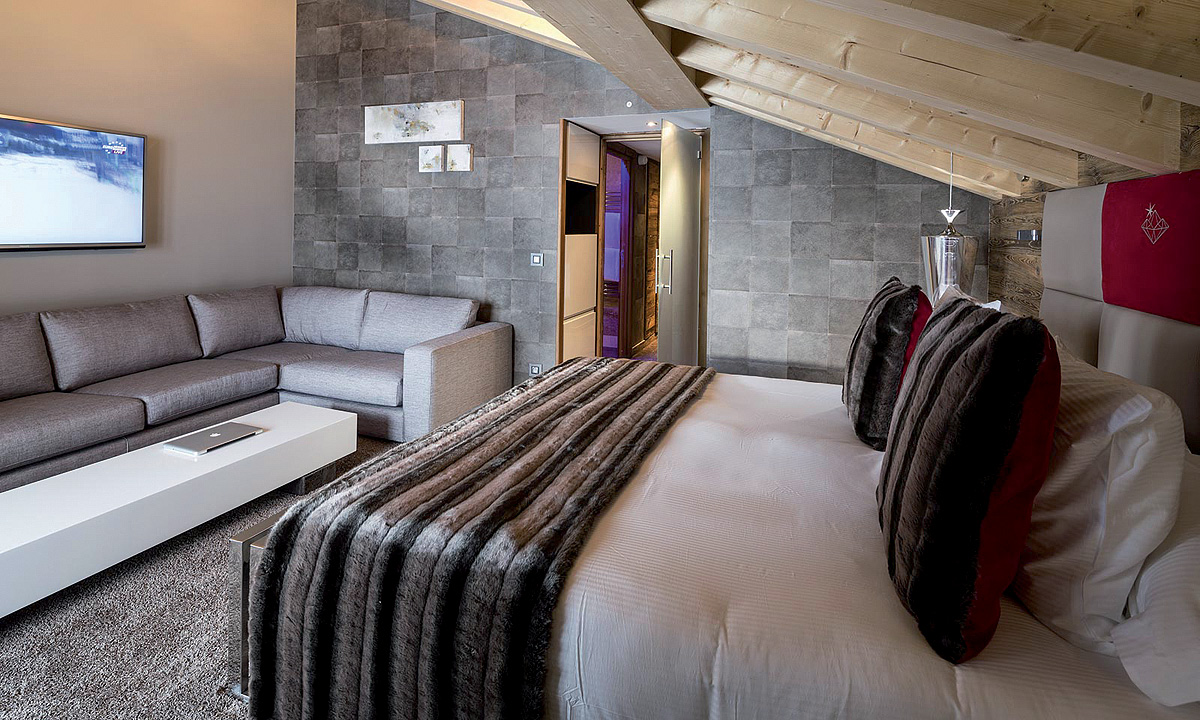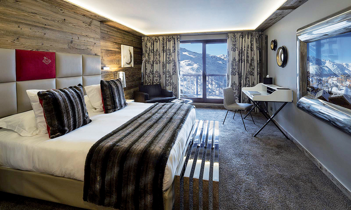 špičkový luxusní hotel, jeden z nejlepších ve středisku s ideální polohou přímo na sjezdovce a nádherným výhledem na celé středisko a okolní masivy