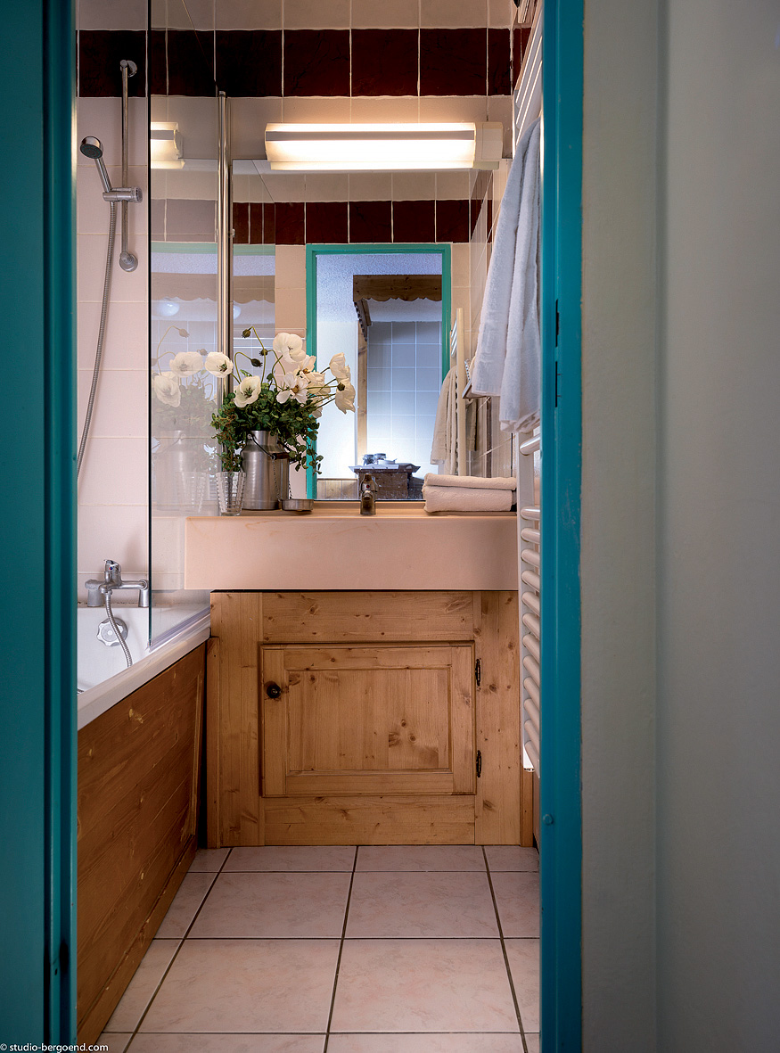 50 m² - 1. podlaží apartmánu: 1 ložnice se 2 samostatnými lůžky či rozkládacím gaučem typu "šuplík" pro 2 osoby oddělená zašupovací stěnou, obývací pokoj s kuchyňským koutem a rozkládacím gaučem typu "šuplík" pro 2 osoby, sociální zařízení s vanou, balkon s výhledem na hory; 2. podlaží apartmánu: 2 ne zcela uzavřené ložnice se 2 samostatnými lůžky, sociální zařízení (bez WC)