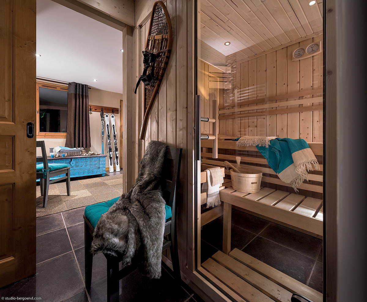 105 m² - 1. podlaží apartmánu: sauna; 2. podlaží apartmánu: obývací pokoj s krbem, samostatná kuchyňka, sociální zařízení (jen WC), balkon; 3. podlaží apartmánu: 1 ložnice s manželskou postelí, 1 ložnice se 2 samostatnými lůžky, 2x sociální zařízení se sprchou či vanou (1x bez WC); 4. podlaží apartmánu: 1 ložnice se 4 samostatnými lůžky
